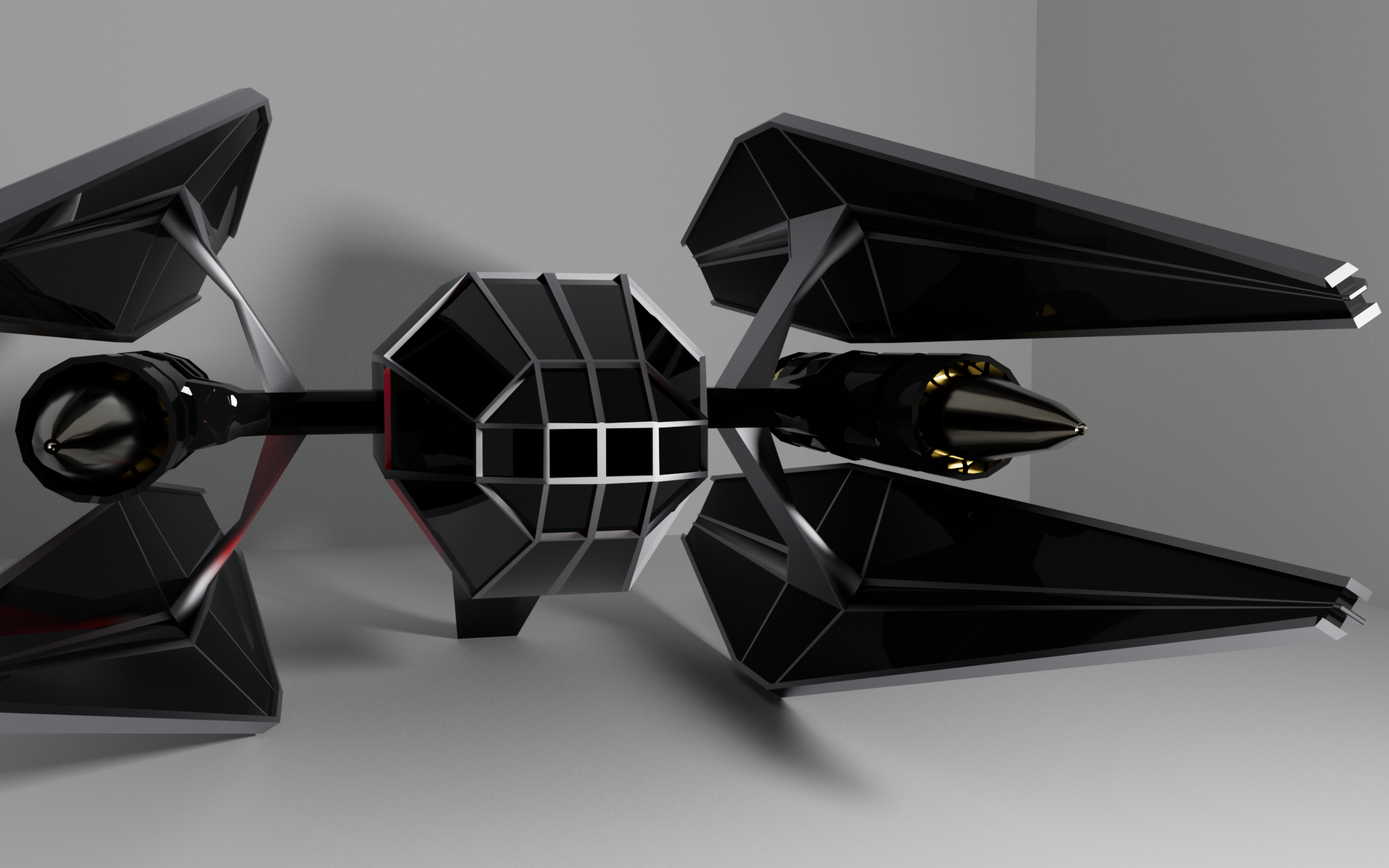 Dieses Projekt entstand im Rahmen einer 24 Studen Modeling-Jam zwischen den Studierenden, welche das Thema „Space Ship“ trug. Das Model ist inspiriert vom StarWars Tie-Interceptor.